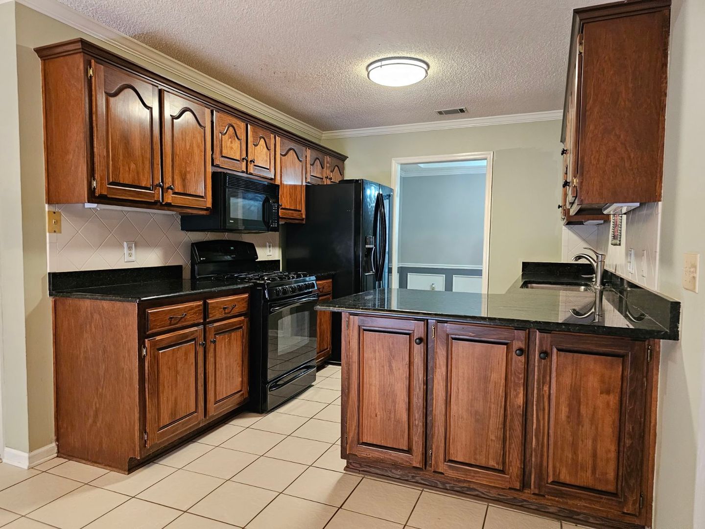 The well-appointed kitchen is a chef's dream, boasting sleek countertops, ample cabinet space, and modern appliances. Whether you're cooking up a gourmet meal or preparing a quick snack, this kitchen offers everything you need to unleash your culinary skills. Adjacent to the kitchen is a spacious dining area, perfect for enjoying meals with family and friends.